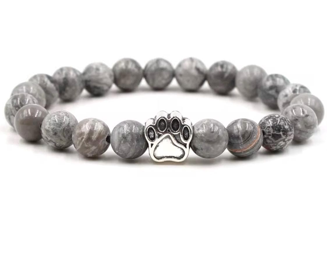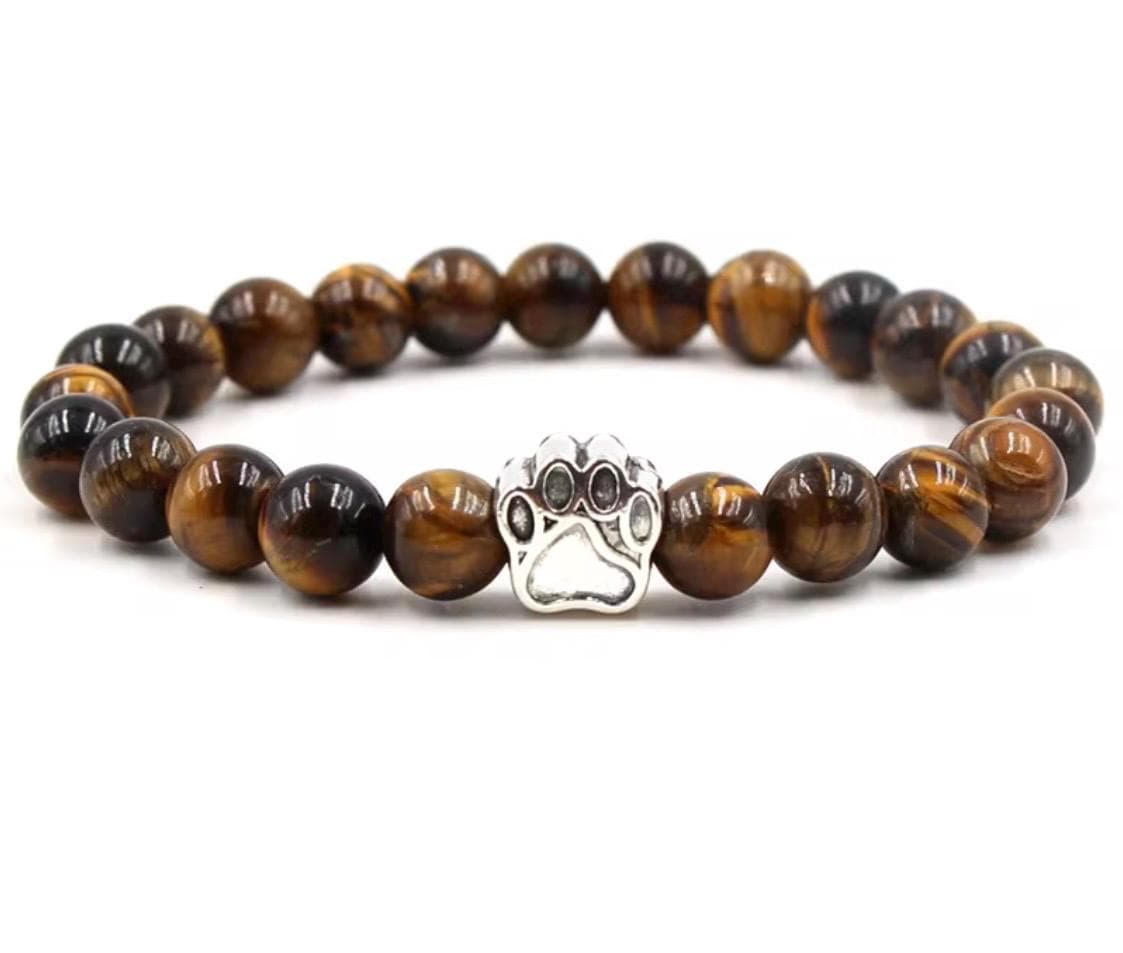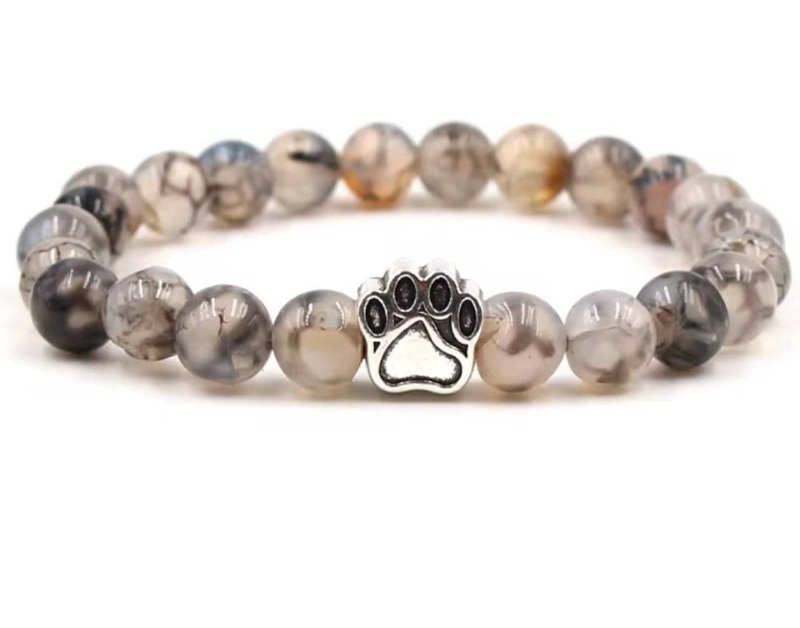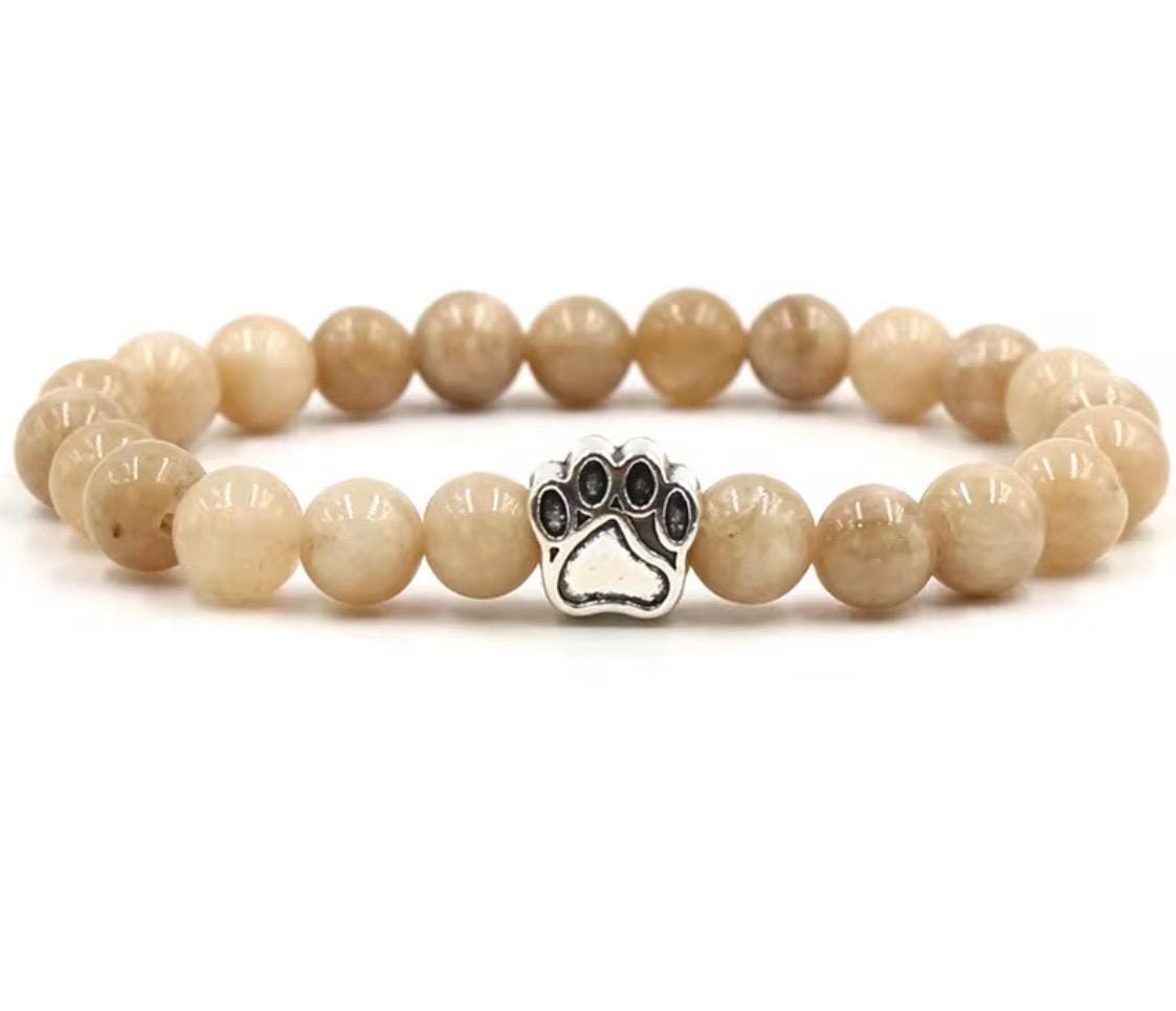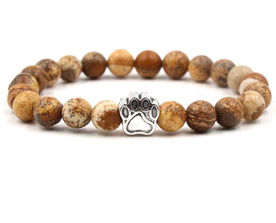 Designed with smooth natural stone beads in warm, earthy tones, this bracelet features a silver paw print charm that symbolizes loyalty, love, and the unbreakable bond we share with our pets. Timeless and meaningful, it’s perfect for everyday wear or as a heartfelt keepsake.