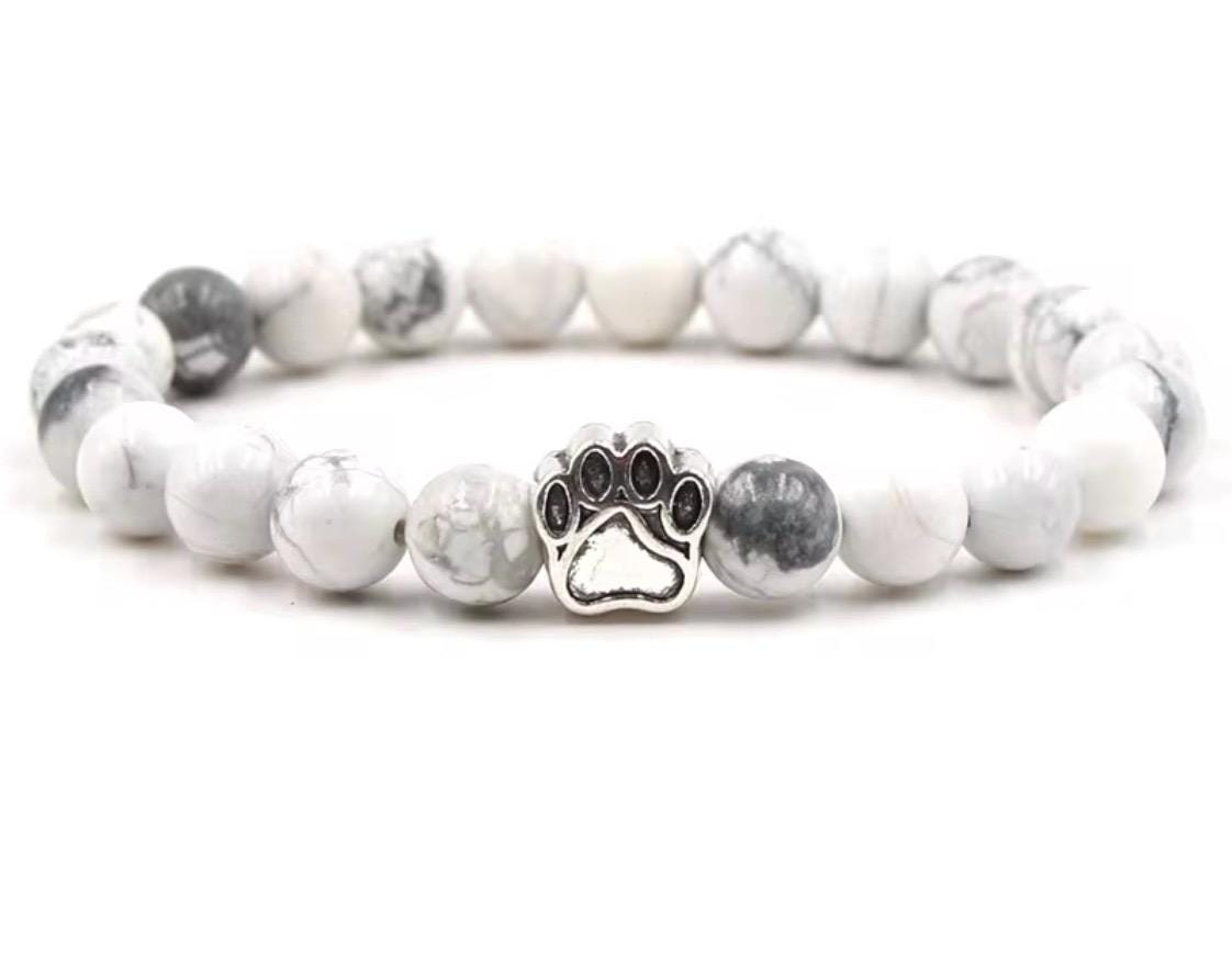 Celebrate the unconditional love of your furry companion with this Paw Print Natural Stone Bracelet, thoughtfully handcrafted for dog lovers and pet parents.